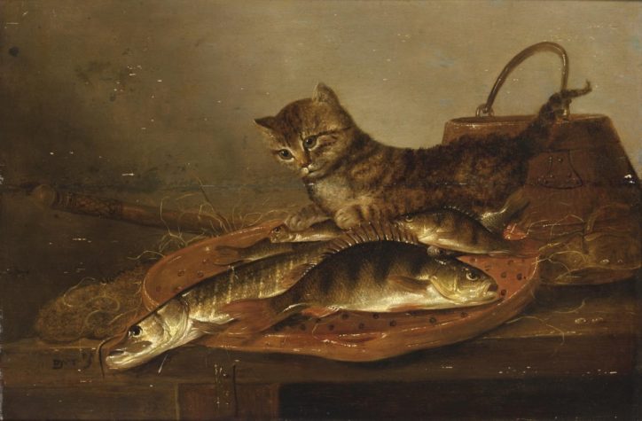 («Натюрморт с рыбой и кошкой». Pieter de Putter, 1605-1659)